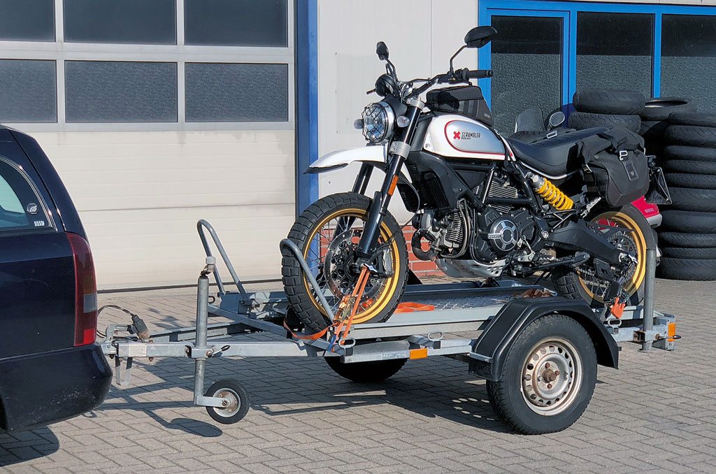 All diese Überlegungen führten beim Dipl. Ing. Matthias Müller von der Firma Lioncraft zu der Entwicklung von Axfix, einer patentierten Transportlösung für Motorräder, die wir ausprobieren konnten.