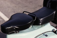 Hatte der Chetak-Käufer in den letzten Jahren noch die Wahl zwischen den Modellen „Standard” mit Sitzbank und „Classic” mit Schwingsattel und Soziusbrötchen, gibt’s ab diesem Jahr nur noch den viel schöneren Oldie mit Einzelsitzen. So wunderbar bequem der Fahrer auf dem Schwingsattel untergebracht ist, so hart im Nehmen muß der Sozius sein. Das kleine Kissen gibt die über die schwächliche Hinterradfederung durchkommenden Schläge gnadenlos weiter. Zu allem Überfluß sitzt der Sozius auch noch etwas tiefer als der Fahrer und muß sich somit „blind” seinem Schicksal ergeben. Der Chetak-Reiter ist aber, wie gesagt, sehr kommod untergebracht, Fußraum gibt’s genug und auch das riesige Staufach am Beinschild engt die Bewegungsfreiheit nicht unnötig ein.