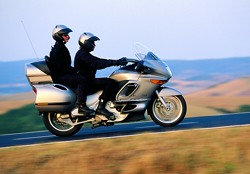 Verblüffend ist die Handlichkeit des schweren Brockens, doch hier liegt natürlich auch das Risiko. Hohes Gewicht, hohe Fliehkraft und bei schneller Kurvenfahrt sollte man sich vor Selbstüberschätzung in acht nehmen. Auch in der Garage beim Rangieren ist Vorsicht geboten. Zwar läßt sich die LT relativ leicht auf den Hauptständer wuchten, doch sollte man ihr nicht allzuviel Kippmöglichkeiten lassen. Auch wenn BMW sagt, ein „Umfaller” sei dank integriertem Sturzbügel keineswegs kostenintensiv, so kann man sicher trotzdem gern auf einen solchen verzichten. Der Seitenständer ist vom sitzenden Fahrer ohne Gefummel gut zu erreichen, er ist stabil und mit den nötigen Sicherheitseinrichtungen ausgestattet. Anders als bei der RT kann der Motor bei ausgeklapptem Seitenständer laufen. Erst wenn ein Gang eingelegt wird, schaltet der Motor ab.
