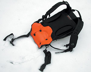 Die Hartschale ist durch ein „Zieharmonikasystem mit der Trägerplatte verbunden. Das Stauvolumen steigt dadurch bei Bedarf von 20 auf 25 Liter. Die Hartschale sorgt nicht nur für einen außerordentlich guten Schutz des Inhalts (wichtig bei Kameras oder Laptops) sondern arbeitet bei einem Sturz zusammen mit der Trägerplatte auch als Rückenprotektor. Die CE-Zertifizierung dafür ist beantragt. Riemen im Inneren sorgen für den rückennahen Sitz der Ladung. Die Ausbuchtung in der Hartschale nimmt bei Bedarf Schlafsäcke, Pennmatten, leichtere Zelte oder ähnliches auf. Umfangreiches (aufpreispflichtiges) Zubehör deckt hier fast jeden erdenklichen Einsatzbereich ab.
