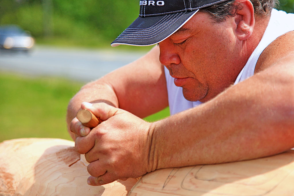 Auf unseren Erkundungstouren über die nördliche Hauptinsel treffen wir gleich mehrere Totempfahl-Schnitzer bei der Arbeit. Einen von ihnen am Strand von Masset, wo seine nach frischem Holz duftende Werkstatt in einer traumhaft schönen Bucht gelegen ist. Er erzählt uns spannende Geschichten seiner Vorfahren und wie sich die Zeiten heute geändert haben. Nach einer Weile sagt er uns, er müsse nun raus, um sein Abendbrot zu fangen. Die Flut setze ein. Neugierig beobachten wir, wie er binnen kürzester Zeit einen großen Eimer voller Riesenkrebse fängt.