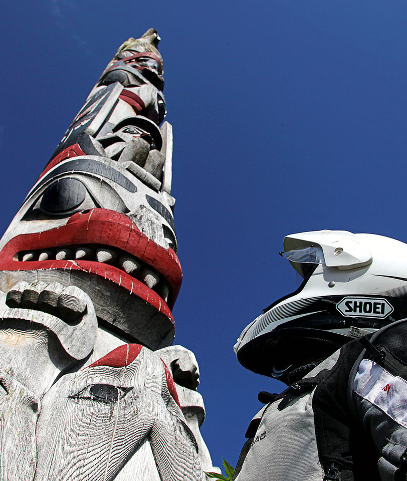 Auf Haida Gwaii, den ehemaligen Queen Charlotte Inseln, lebt seit über 10.000 Jahren das Volk der Haida, eines der ältesten ortsfesten Völker der Welt. Mit ihren hochseetüchtigen Kanus dominierten sie über viele Jahrhunderte die Nordamerikanische Küste. Da es auf den üppig grünen Inseln Nahrung im Überfluss gab und Sklaven einen großen Teil der Arbeit erledigten, hatten die Haida jede Menge Zeit sich der Kunst zuzuwenden. So entstanden unter anderem auch die weltbekannten Totempfähle. Die kunstvoll geschnitzten und meist grellbunt bemalten Baumstämme, dienen bis heute als Prestigesymbol und Familienwappen. Sie erzählen alle unterschiedliche Geschichten, in denen traditionelle Motive wie Wale, Bären, Adler oder Biber einer Art Verbindung mit der Geisterwelt herstellen sollen. Damit Besucher in früheren Zeiten die Geschichten gleich lesen konnten, sind die Stämme stets zum Meer hin ausgerichtet. Die reich verzierten Totempfähle sind über Kanadas Grenzen hinaus bekannt. Ein Grund dafür, dass immer mehr junge Haida den traditionellen Beruf des Totempfahl Schnitzers erlernen ist sicherlich auch die Tatsache, dass die Kunstwerke mit bis zu einer halben Millionen Euro gehandelt werden.