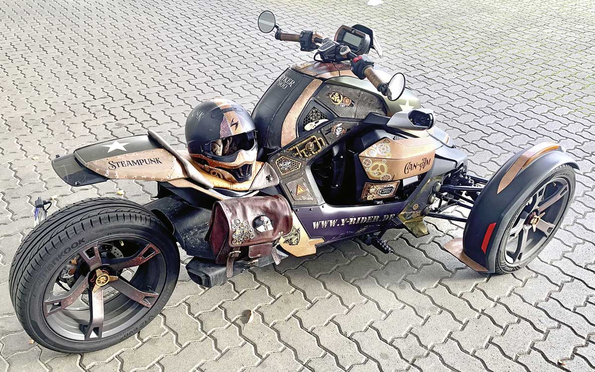 Mit dem Mapping und der Gasgriffbox konnte die Beschleunigung von 0–100 km/h um mehr als eine Sekunde, auf ca. 4,5 sec. verringert werden. Hinzu kamen im Laufe der Jahre einige Modding-Parts, die ich im 3D-Druck und mit speziellen Folien herstelle und über meinen Shop www.y-rider.de vertreibe. Hier findet jeder RYKER-Fan Teile, mit denen er sein Fun-Bike individualisieren kann. Alle Teile und Decals werden von mir entworfen und hergestellt. Auf Wunsch erstelle ich auch komplette Themen-Designs nach den Vorstellungen meiner Kunden. Einige Y-Rider-Ryker laufen mittlerweile in Kanada, Frankreich, den USA, Belgien und natürlich in Deutschland. Vor kurzem habe ich das Sortiment um den Bereich Mode erweitert Unter dem Lable „Let’s Ryke“ findet man bei mir nun auch T-Shirts und vieles mehr, mit Ryker-Motiven.