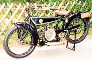 Unter dem Motto „Schwerter zu Kurbelwellen” kann man die Entstehungsgeschichte zusammenfassen. Das erste Modell – Typenbezeichnung M 23 – kam viel zu schnell und unausgereift auf den Markt. Die Kunden dienten offensichtlich als Versuchsfahrer. Dem Motor, insbesondere dem hinteren Zylinder, sagte man nach, daß er so heiß wird, daß man sich eine Zigarette daran anstecken kann. Das Grundkonzept, beruhend auf den englischen Douglas-Motoren, war Anfang der 20er Jahre durchaus modern: ein in Längsrichtung eingebauter Zweizylinder-Boxer. 3 PS aus 400 ccm Hubraum war die bescheidene Leistungsausbeute des wechselgesteuerten Motors (kopfgesteuerte Einlaßventile mit freiliegenden Stoßstangen und seitengesteuerte Auslaßventile.