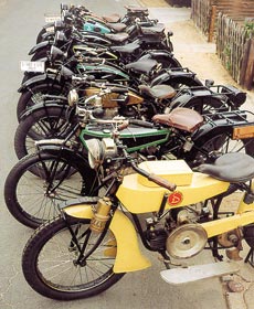 Um es vorwegzunehmen: D-Rad-Fahren hat mit Motorradfahren ungefähr genauso viel gemeinsam wie Trabant-Fahren mit Autofahren. Was ich damit sagen will: Wer sich auf das Abenteuer im öffentlichen Straßenverkehr einlassen will, kann zunächst einmal getrost alles vergessen, was er auf Honda & Co. gelernt hat. Da ist zuerst die Startprozedur. Benzinhahn öffnen, Schwimmerkammer fluten und – beim Boxer sowie den ersten Einzylindermodellen – Öl vorpumpen, damit Kolben und Zylinder gut geschmiert werden. Dann wird mittels Dekompressionshebel der Kolben über den oberen Totpunkt gebracht. Der folgende beherzte Tritt auf den Kickstarter kann den Motor nun theoretisch zum Leben erwecken. Aber eben nur theoretisch. In der Praxis bedeutet das für den D-Rad-Neuling Schweiß und eventuell sogar eine dicke Wade, wenn die Kurbelwelle bei zuviel Frühzündung versucht, andersherum zu laufen. Hat dann der Motor irgendwann Erbarmen mit seinem Biker und nimmt die Arbeit auf, was bei einiger Übung tatsächlich auf den ersten Kick gelingt, geht selbige für den Fahrer erst richtig los. Kupplung ziehen und mit der linken Fußspitze den ersten Gang einlegen? Vergiß es! Richtige Männer treten die Kupplung mit dem Fuß und sortieren sodann die Gänge mit der Hand. Geschont wird beim Gasgeben das rechte Handgelenk. Stattdessen ist ein kräftiger Daumen vonnöten, der den Gashebel betätigt. Auch der linke Daumen ist nicht zur Untätigkeit verdammt, er verstellt manuell Früh- und Spätzündung. Das alles erfordert zwar einige Übung und Fingerspitzengefühl, macht dann aber – wenn man es raus hat – viel Spaß, sich wie zu Großvaters Zeiten fortzubewegen.