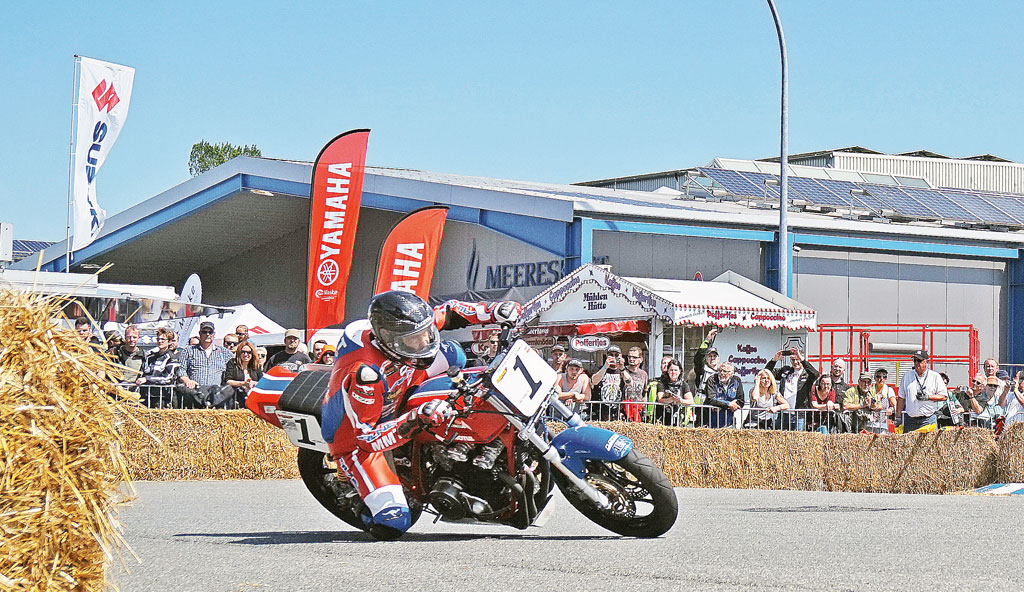 Eine Händlermeile, mit den neuesten Motorrad Modellen und viele Wurst-, Kaffee-, Kuchenstände (ach nee, das sind ja heutzutage Foodtrucks) etc. sorgen für Volksfestcharakter. Abends spielt eine Band im Festzelt – topaktuelle Hits von UFO bis Michael Jackson stehen auf dem Programm.