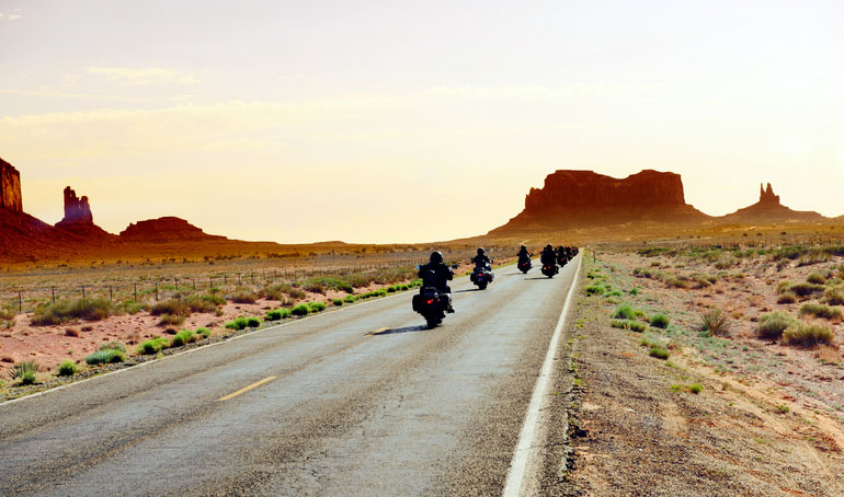 Einmal im Leben auf der Route 66 von Chicago nach Kalifornien entlangbrettern und die ganz große Biker-Romantik früherer Jahrzehnte nachempfinden: ein Lebenstraum für viele Motorradfahrer. Andere wiederum träumen von einer Fahrt durch die einzigartigen Landschaften Australiens oder entlang der Panamericana durch Südamerika. Allerdings ist es teuer, das eigene Motorrad zu verschiffen, darüber hinaus warten in fremden Ländern andere Verkehrsregeln, Verständigungsprobleme und mehr. Auslandsreisen mit dem Motorrad beschränken sich daher meist auf das europäische Ausland. Wer sich den Traum von der Route 66 dennoch erfüllen will, kann an organisierten Motorradreisen teilnehmen. Der Pauschalpreis umfasst alle Übernachtungen entlang der Strecke, die (meist deutschsprachige) Reiseleitung und ein Leihmotorrad für die Fahrt.