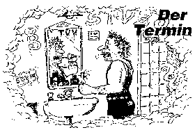 Ich darf mich nicht so verrückt machen, schließlich bin ich gut vorbereitet. Eigentlich kann nichts schief gehen, es sei denn… – verdammt, Schluß damit! Alles wird glatt gehen, reg dich ab, alter Junge, nur die Ruhe bewahren. „Kein Grund zur Panik”, beruhige ich mich ein letztes Mal, nachdem ich auch die Rasiercreme von dem Hornhautschaber abgewaschen habe und voller Tatendrang mein Bad durch die dafür vorgesehene Tür verlasse. Sie fällt hinter mir laut klappernd ins Schloß, und während ich mich noch kurz frage, wer wohl über Nacht meine Diele gekachelt hat, stelle ichresignierend fest, daß ich in meiner Duschkabine stehe…