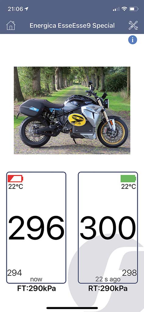(2 Ersatzbatterien, Montageschlüssel, Austauschventilen, Sicherungsmuttern) und kostet 106,25 Euro. Die Montage ist denkbar einfach und dauert nur wenige Minuten. Die alten Ventilkappen entfallen, die Sensoren werden über eine Mutter, gegen Diebstahl gesichert, aufs Ventil geschraubt. Eine zusätzliche Codierung bei Inbetriebnahme machen sie für Diebe zusätzlich wertlos. Über eine App fürs Smartphone (erhältlich für iOS und An­­droid in den üblichen Download-Stores) werden die Sensordaten dann via Bluetooth abgefragt.