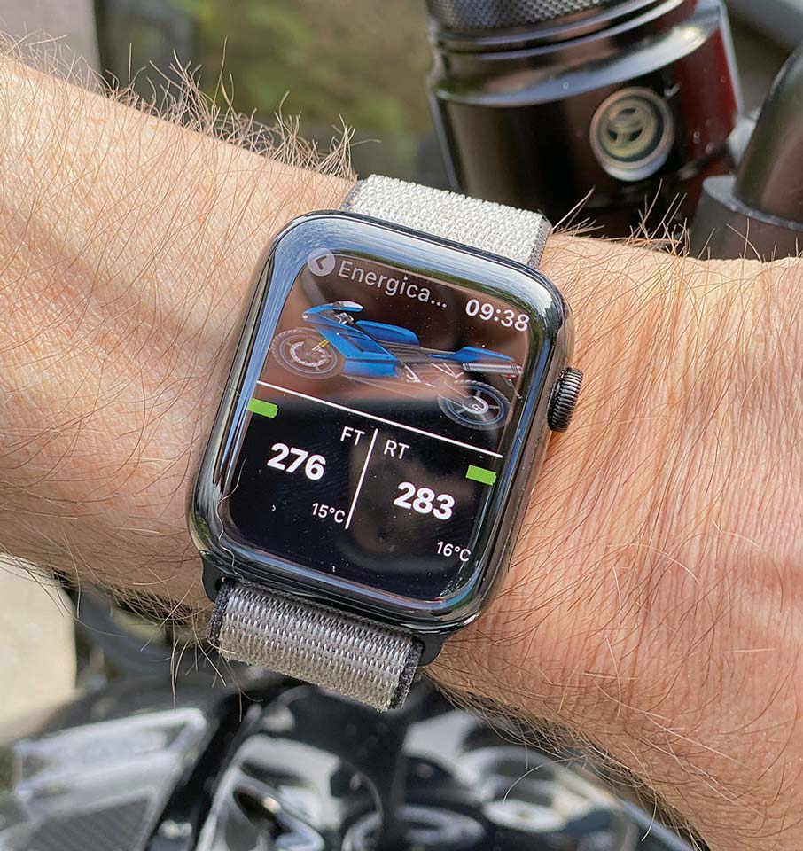 Über die App lassen sich mehrere Fahrzeuge abfragen und so habe ich gleich noch eine meiner Maschinen mit dem FOBO Bike 2 ausgestattet. Maximal 9 unterschiedliche Fahrzeuge oder 18 Räder sind möglich. Die Sensoren kommen sich nicht in die Quere, auch wenn die Maschinen eng beieinanderstehen. Auch unerwünschte Wechselwirkungen mit anderen Bluetooth-Sendern, wie dem Headset oder dem SOS-System konnte ich nicht feststellen. Ferner wird in der App der Status der Sensor-Batterien – sie arbeiten mit CR1632-Knopfzellen – angezeigt, es lassen sich Fahrzeugdaten mit anderen teilen, die angelegten Fahrzeuge mit eigenen Bildern versehen und eine Erinnerungsfunktion für den nächsten Service einstellen. Die Knopfzellen sollen bis zu zwei Jahre halten.Gut gefällt mir auch die Option, die Daten über meine Apple iWatch anzeigen zu lassen. Mit Wear