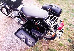 So recht haben wir nicht daran geglaubt, etwas passendes zu finden, dann sind wir aber doch fündig geworden. Von der Firma JF-Motorsport ließen wir uns die Givi-Cruiser-Cases mit dem zugehörigen Chromträger kommen. Die Koffer fassen jeweils 11 Liter und sind aus Kunststoff. Befestigt werden sie an den lasergeschnittenen, verchromten „Full-Metal-Line”-Trägern, die fest an das Motorrad montiert werden. Zwar ist die mitgelieferte Anbauanleitung recht dürftig, trotzdem lassen sich die Träger innerhalb einer guten Stunde sogar mit dem Bordwerkzeug montieren. Wir mussten lediglich die Distanzhülsen mit einer Eisensäge kürzen, weil wir gleichzeitig den original Kawasaki-Gepäckträger montierten, der an die gleichen Aufnahmen im Heck befestigt wird. Das Abnehmen bzw. Anhängen und Anschließen der Koffer geht übrigens vorbildlich einfach. Die Koffer werden unten in die Träger eingehängt und oben mit dem Kofferschloss eingerastet, wobei die Drehung des Schlüssels gleichzeitig zum Verschließen der Deckel wie zum Anschließen an die Träger dient. In der Praxis stellt sich allerdings schnell heraus, dass das nicht unbedingt die ideale Lösung ist, weil man jedes Mal, wenn man etwas aus den Koffern holen oder hineinlegen will, die Schlüssel aus der Tasche suchen muss – abziehen lassen sie sich nämlich nur im verschlossenen Zustand. Wir ließen sie deshalb immer stecken (sie können nicht herausfallen) und zogen sie nur ab, wenn das Motorrad irgendwo unbewacht parkte.