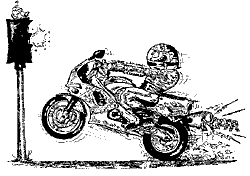 Hauptsache schnell, Hauptsache viel buntes Plastik, danach sucht er sich sein Ofen aus. Wo er herfährt merkt er sowieso nich, weil er eh nur auf sein Drehzahlmesser glotzt bein Fahn, trotzdem reecht er sich auf, weiln paar Bergstrecken gesperrt sind, weil solche wie er sich da gern ma tot fahn. An Wochenende brüllt er an liebsten 800 km über die Autobahn, trinkt anner Tankstelle ne Tasse Kaffe un fährt wieder nach Hause.
