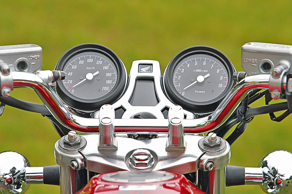 Die Unaufgeregtheit dieser Maschine ist es dann auch, die einen in den Bann zieht. Vielleicht einmal abgesehen von dem etwas zu schmalen Lenker, den andere Serienbikes auch oftmals verbaut haben, sowie dem nicht optimal positionierten Hupenknopf, dort vermutet man eigentlich den Blinkerschalter, was am Anfang zu Irritationen führen kann, gibt es am Ende einer ausgedehnten Tour nichts zu meckern. Alles fügt sich im CB Konzept zusammen und bekommt mit der enganliegenden, nun doppelwandigen, verchromten vier in zwei Auspuffanlage noch sein glänzendes Krönchen. Während die heiße Maschine knisternd abkühlt, so wie das nur ein alter luftgekühlter Motor tut, liegt immer ein wenig CB 750 Four Flair aus der Vergangenheit in der Luft.