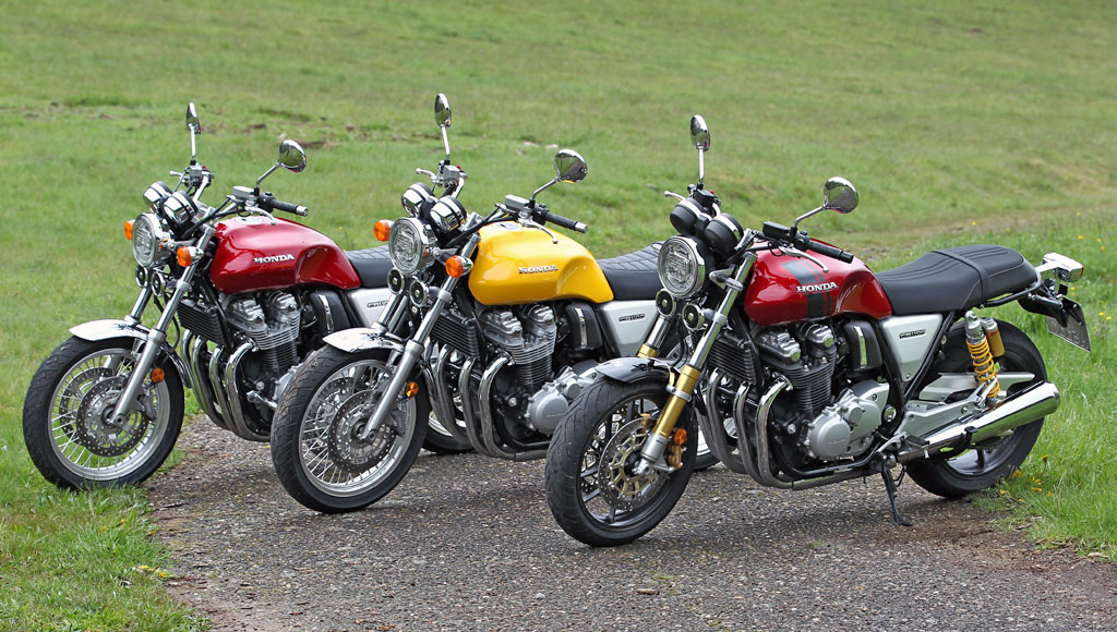 Wem zu guter Letzt die RS dann doch nicht klassisch genug ist, der kann sich die EX-Schwester anschauen. Anders als die RS kommt die auf 18 Zoll Speichenfelgen daher, mit einer noch klassischeren Sitzposition und dürfte noch ein wenig handlicher zu fahren sein, da sie zudem mit 110er und 140er Reifen schmaler bestückt ist. Ansonsten unterscheidet sie sich noch durch die etwas schwächere Gabel mit 41 mm Durchmesser und einfache Nissen Bremszangen die in 296 mm Scheiben beißen dürfen. Motortechnisch sind beide Maschinen jedoch identisch und stehen beim Hondahändler zur Probefahrt bereit.