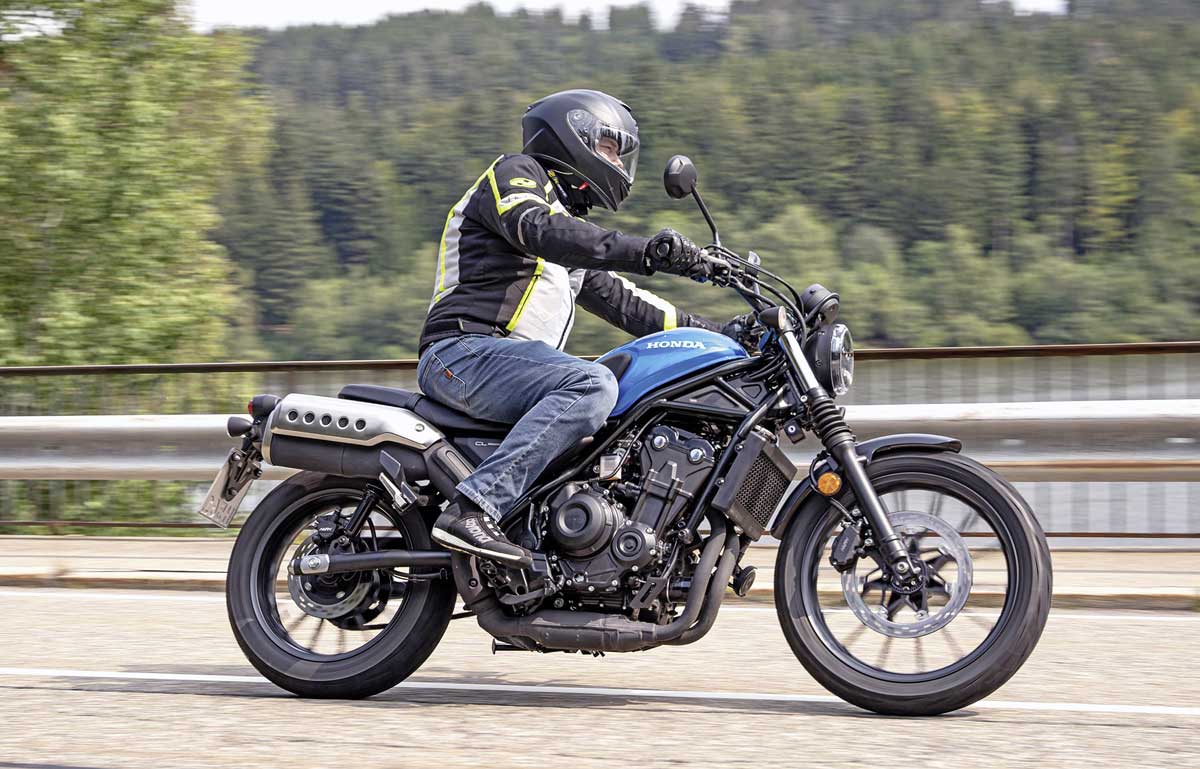 Die genannten Handling-Eigenschaften entfalten natürlich auch im Kurvengeschlängel ihre positive Wirkung, werden hier aber noch durch zwei weitere Merkmale verstärkt, denn die CL lenkt nicht nur leichtfüßig und willig ein, sie glänzt auch bei zunehmender Schräglage mit neutralem Fahrverhalten. Das schafft viel Vertrauen. So macht es einem das Motorrad sehr einfach, sich aufs Wesentliche zu konzentrieren. Kurve anvisieren, abwinkeln und mit einem Lächeln im Gesicht die Freuden des Motorradfahrens genießen. Dabei spielt es fast keine Rolle, ob man auf Asphalt vom Typ „Babypopo“ oder „Rübenacker“ unterwegs ist. Bis auf die Vorspannung der beiden hinteren Federbeine ist das Fahrwerk zwar nicht einstellbar und wirkt im ersten Moment sehr weich, im Fahrbetrieb gibt es aber keine Kritikpunkte und sowohl an Front als auch achtern werden Fahrbahnunebenheiten jeder Couleur gut weggefiltert.