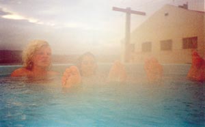 Besonders schön geht der Tag zu Ende, wenn die Jugendherberge auch noch über einen hot pot, also eine eigene heiße Quelle verfügt. Nachdem man sich erstmal an den schwefligen Geruch des Wassers gewöhnt hat, ist es unbeschreiblich erholsam, bei Außentemperaturen kurz über null Grad in dem mehr als 30 Grad warmen Naturpool zu liegen. Einen hot pot hat die Jugendherberge in Fosshol zwar nicht zu bieten, dafür hat man von seinem Zimmer aus einen direkten Ausblick auf den Godafoss, einen der schönsten Wasserfälle in Island. Und wenn man Glück hat, sieht man sogar einen verrückten Isländer, der mit dem Kajak den Fall hinunterstürzt. Tja, komische Sportarten kennt man hier….