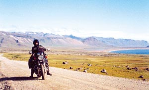 Huii…verdammt kalt hier in Keplavik, dem einzigen internationalen Flughafen auf der Insel. Per Shuttle-Bus erreiche ich 45 Minuten später Reykjavik und mache mich von der Jugendherberge aus zu Fuß auf den Weg zum Hafen. Und da steht sie tatsächlich – meine geliebte Ziffie. Und nachdem ich noch einen Zollaufkleber auf den Tankrucksack bekommen habe, geht es endlich los. Zuerst einmal zur nächsten Bank, da meine ersten getauschten 100 DM schon für zwei Nächte Jugendherberge und ein paar Lebensmittel aufgebraucht sind. Tja, teures Pflaster hier. Dafür lerne ich hier meine erste Isländerin kennen. Sie heißt zwar nicht Björk, fährt aber Motorrad und ist Mitglied im isländischen Motorradclub Sniglar, was so viel wie Schnecke bedeutet aber kein Frauenmotorradclub sondern unisex ist. Und prompt lädt sie mich ein, heute abend im Clubheim der Schnecken vorbei zu schauen. Na, das mach ich doch gerne.