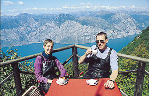 Wieder im Sattel des Bayernboxers passieren wir die Hochburgen der Windsurfer, stetige Winde und angenehme Wassertemperaturen machen den Lago di Garda zum Surferparadies. Unser letzter Abstecher auf dem Heimweg gilt Malcésine. Hier kam Goethe für kurze Zeit hinter Gitter. Er wurde der Spionage verdächtigt, als er den Turm der alten Skalingerfestung zeichnete, konnte aber alle Zweifel beseitigen. Eine kleine Panoramastraße führt hoch über den Ort und erlaubt wunderschöne Ausblicke bis hinüber nach Limone und Tremosine. Die beste Sozia von allen und ich schauen nach Süden, dort werden am Horizont Himmel und Wasser eins, der See scheint unendlich. Fast wie bei uns in Norddeutschland …