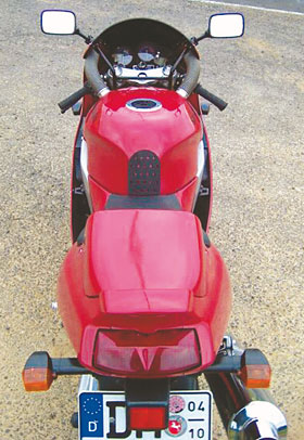 Zuhause angekommen montierte ich die Blinker, und als es Abend war, fuhr ich noch schnell eine Runde ums Dorf. Ich hatte gerade das Ortsschild passiert, da schwanden die Drehzahlen und schließlich stand ich ganz! Da ich im Dunklen nicht feststellen konnte, woran die Kawa gestorben war, blieb mir nichts anderes übrig, als 6 km wieder nach Hause zu schieben. Am nächsten Tag begann die Fehlersuche. Daß sie auch einen ganzen Tag dauern würde, ahnte ich nicht. Ohne wirkliches Fachwissen oder gar ein Handbuch über die ZXR zu haben, begann ich zu stöbern, zerlegte fast das ganze Krad und fand nichts. Kurz davor, den Hobel auch ohne Rennstrecke verschrotten zu wollen, stieß ich auf ein leicht geöffnetes Sicherungskästchen mit einer sich darin befindlichen durchgebrannten Stecksicherung. Und nun, werter Leser, denken Sie sich bitte den Rest. Genau! Die Sicherung war für die Benzinpumpe zuständig, welche folglich nicht mehr pumpte! Das war´s. Von der Kawa bedient, meldete ich sie ab und schob sie in die hinterste Garagenecke.