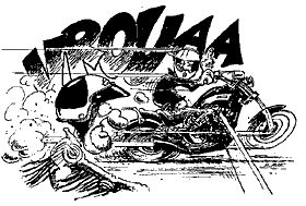 Dr. M. kennt die nächste Kurve. Er geht vom Gas. Der Stinker nicht. Auf der nächsten Geraden sind die beiden Motorräder bereits etwa hundert Meter voneinander entfernt. Jetzt bekommt der Hubraumriese die Sporen seines Reiters zu spüren. Fast 140 km/h zeigt die Küchenuhr auf dem Tank an. Der Abstand zum Stinker ist etwas geringer geworden, aber die nächste Kurve ist schon da. Etwas wackelig auf seinen Fahrradreifen, aber fröhlich, ungebremst und in abenteuerlicher Schräglage verschwindet das Moped aus dem Blickfeld. Der Harley-Treiber gibt das Spiel auf. Was soll’s!