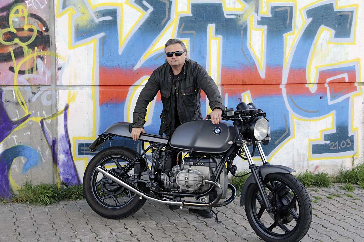 Hier ist meine Kraut-Variante: ein BMW Café Racer auf Basis Typ 247. Einst war die BMW eine R 80 mit dem Baujahr 1985. Sie hatte einen hohen Lenker, eine Scheibe und war rot, sonst ziemlich vergammelt. Das gute Stück stand mehrere Jahre unbewegt herum. Ich fand das Teil in der „Badischen Motorrad Werkstatt“ von Gerhard Stricker in Karlsruhe Daxlanden. Optimale Voraussetzungen für ein Café Racer.