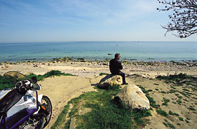Ab Mitte Mai bikerfreundliche Temperaturen. Dann taucht die Rapsblüte das ganze Land in den Farbeimer. Angenehme Badetemperaturen ab Ende Juni. Die Sommerferien sollten gemieden werden. Der meist beständige September lockt mit reizvollen Touren entlang der abgeernteten Felder. Ständig vorherrschende Winde vertreiben rasch so manche Regenwolken.