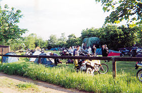 Wir reden etwas Benzin bis dann um 15 Uhr endlich jemand von der Organisation kommt. Nachdem wir unsere Zelte aufgeschlagen haben, füllt sich auch langsam der Platz mit Zelten. Am Abend wird er „wegen Überfüllung geschlossen” und einige müssen außerhalb des vorgesehenen Platzes ihr Quartier aufschlagen.