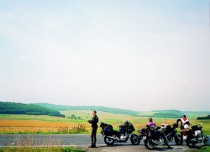 Ein Rundumblick lässt einen freundlichen und warmen Tag erwarten. Wie in den letzten Tagen rödelt man das Gepäck gemächlich auf. Anschließend setzen wir uns zusammen, um über den weiteren Verlauf des letzten Tourabschnitts zu beraten. Wir kommen überein, zuerst kurz in die Innenstadt von Marburg einzutauchen, um dann Richtung Niederwalgen und Bieber aus dem Dunstkreis der Uni-Stadt zu verschwinden. Zur Zeit kann ich gar nicht mehr wiedergeben, wie wir schließlich in die Nähe von Eschenburg gelangt sind; ich gehe mal davon aus, dass im Grunde nicht der ganze gekennzeichnete Kurs abgefahren wurde. Als Mitfahrer im „Rudel” ist der ständige Blick auf die Karte und das Entziffern der Ortsschilder nicht unbedingt mehr nötig, denn Ingo hat seine Aufgabe als Tour-Guide sehr gut absolviert. So taucht unsere Gruppe schließlich vor der Hainicher Höhe kurz hinter Dietzhölztal auf.