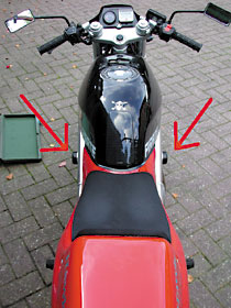 Der aufmerksame Leser erkennt auf den Fotos, das es sich um unsere Bastel-Hawk handelt, die schon für diverse Versuche herhalten mußte. Im B&G Programm, das Rahmen- und Verkleidungsschützer für über 60 Sport- und Touren-Motorräder auflistet, fand sie sich natürlich nicht. Anhand einer einfachen Skizze fertigte man uns jedoch Sturzpads auf Maß – ein super Service.