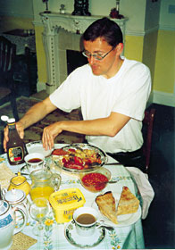 Der weitere Weg führte über die landschaftlich schöne Landstraße 4 über Marlborough und Chippenham zum ersten Etappenziel: Bath. Dort fanden wir – wie mit wenigen Ausnahmen auf der gesamten weiteren Reise – völlig unkompliziert „Bed and Breakfast” (B & B). In allen etwas größeren Ortschaften bieten Privatleute vor allem an Ein- und Ausfallrouten, aber auch in ruhigen Seitenstraßen der Ortsmitte, Gästezimmer nach Art einer Pension an. Wir mussten nur auf Schilder in Fenstern oder an der Straße achten. Ausstattung und Preise sowie Qualität und Zusammensetzung des Frühstücks variieren. Wir haben immer zwischen 25 und 35 engl. Pfund pro Nase gezahlt und bekamen nach Wahl das typische englische Frühstück mit Eiern, Toast, Cereals und Tee oder Kaffee.