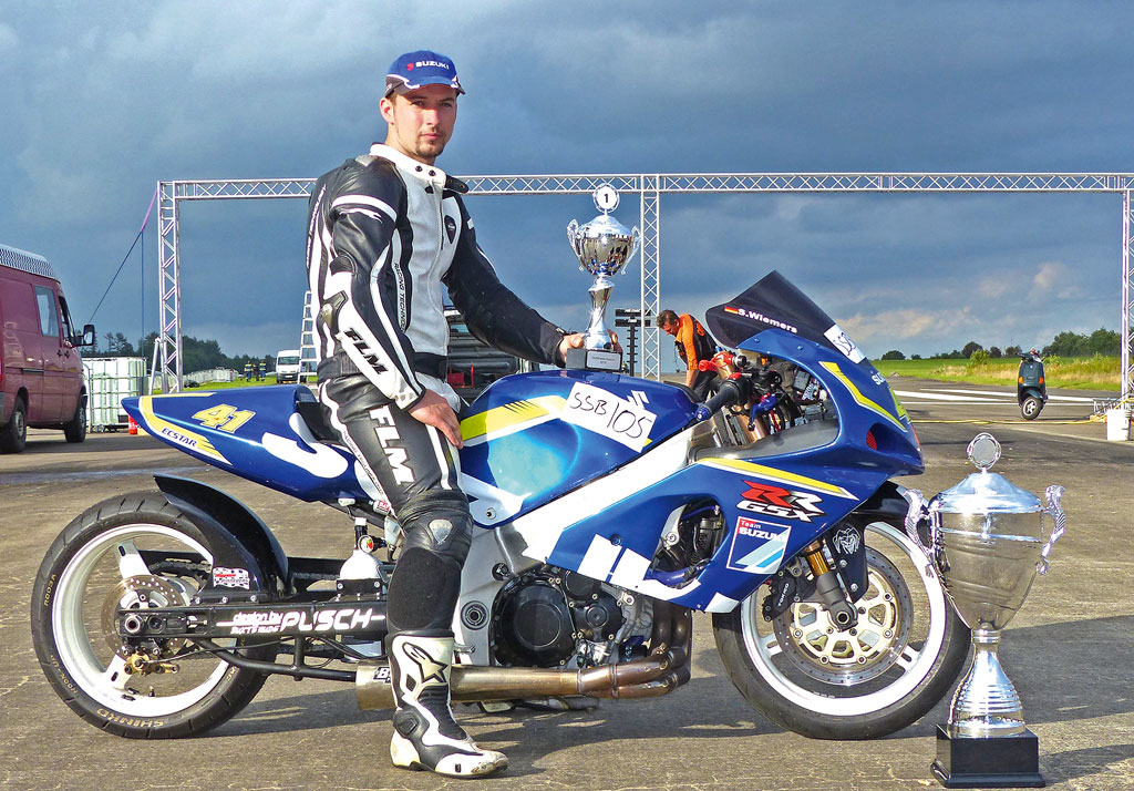 Der 26-jährige Oldenburger betreibt seit 2011 erfolgreich Motorradrennsport in der Drag Racing Szene. Ganz nach seinem Idol Burt Munro aus dem Film „Mit Herz und Hand“, schraubt er in seiner ca. 12 qm großen Garage alles selber und das mit Erfolg: 2012 konnte er den 3. Platz in der Deutsch/Holländischen Meisterschaft erreichen und ist unter anderem mehrfacher Sieger bei den Motobike Speed Days in Damme.
