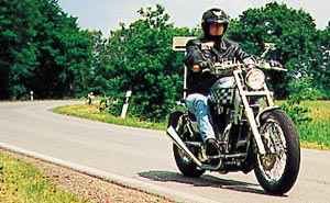 Nach Prüfung der Zuverlässigkeit durch ausgiebiges Fahren besorgte ich mir diverse Zubehörkataloge. Als erstes wollte ich den Lenker verändern – nicht zu breit sollte er sein – und kaufte einen Dragbar der Firma Hagen. Leider war er ohne die nötigen Bohrungen, um die Kabel innen verlaufen zu lassen. Echt hartes Material so ein Lenker. Charly, der so etwas schon mal bei seiner Intruder gemacht hatte, half mit guten Ratschlägen – er erzählte mir, was er alles für Fehler beim Lenkerumbau gemacht hatte. Mit diesem Wissen war ich bereits nach circa zwei Stunden fertig. Leider reichte nun der Lenkanschlag nicht mehr aus, und um den Tank vor Beschädigungen zu schützen, waren noch einige Modifikationen nötig.