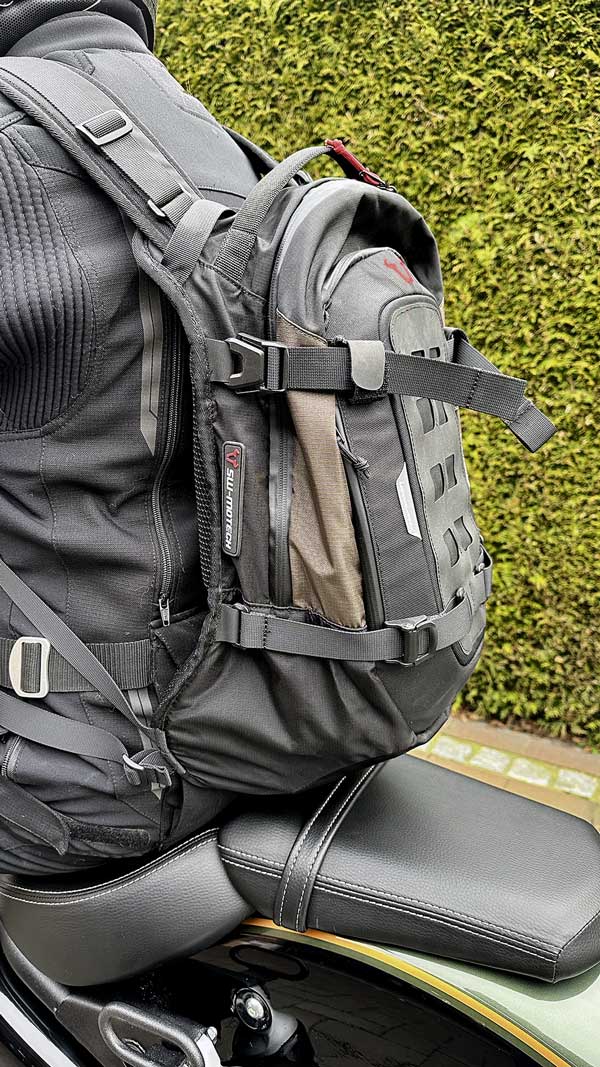 Auf einen integrierten Rückenprotektor wurde bewusst verzichtet, der Rucksack eignet sich somit nicht nur zum Motorradfahren sondern auch für alle anderen Outdoor-Aktivitäten. Der Preis von 140 € geht angesichts der bei SW Motech zu erwartenden Langlebigkeit voll in Ordnung. Ein Aufbewahrungs- bzw. Transportbeutel ist – wie bei SW gewohnt – im Lieferumfang. Idealerweise bestellt man den Rucksack nicht online sondern probiert ihn  vor Ort bei einem der SW Motech Stützpunkthändler aus. Mehr Infos und ein Händler-Verzeichnis findet man unter www.sw-motech.com.