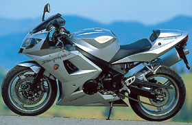 Triumph hätte das Thema 600er vermutlich ganz schnell zu den Akten gelegt, wenn es bei aller Kritik nicht auch kräftiges Lob gegeben hätte. Beim Fahrwerk, beim Handling und auch bei den Bremsen schafften die Engländer mit der TT 600 nämlich aus dem Stand überzeugende Punktlandungen. Es wäre also wirklich schade gewesen, den Vierzylinder einfach sang- und klanglos in den ewigen Jagdgründen von Sherwood Forest zu versenken. Die in ihrer letzten Auflage auch motormäßig gar nicht mal so üble TT 600 tauchte ein letztes Mal in der 2003er-Preisliste auf. Schnäppchenjäger können für knapp 8000 Euro (und damit gute 1500 Euro unter Liste) immer noch fündig werden.