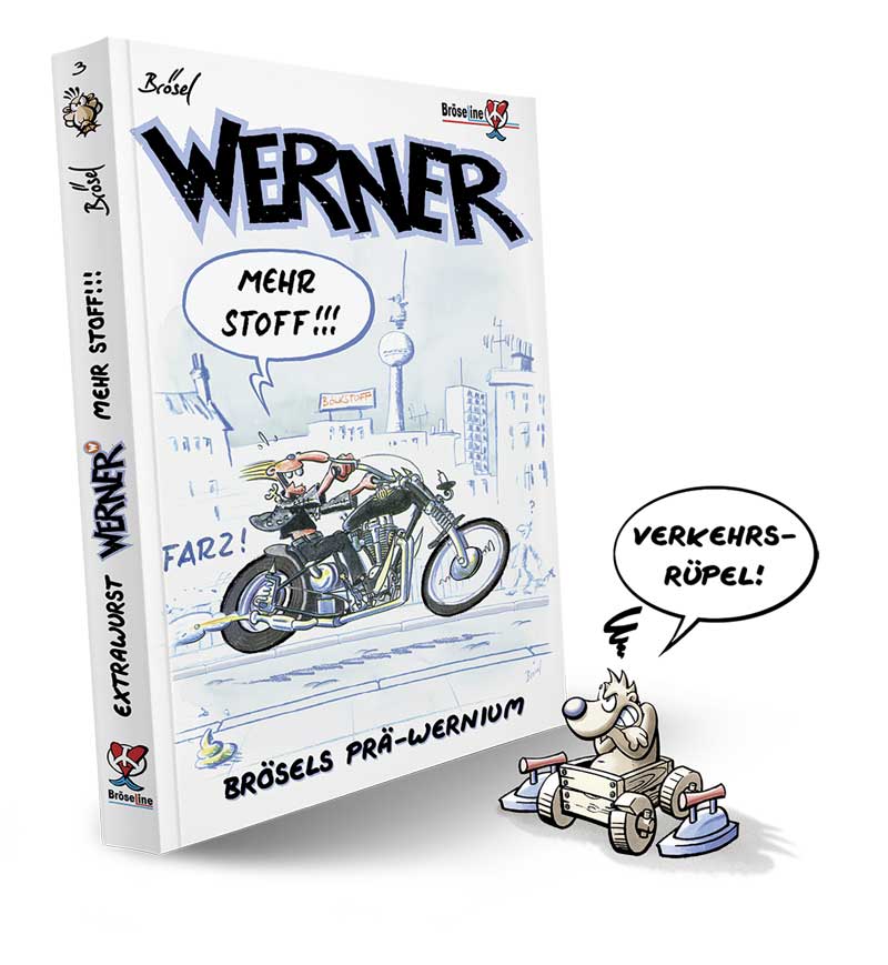 Viele weitere Bände, Filme, Events, Merchandise folgten, die Verlage wechselten und 2018 erschien nach 14-jähriger Pause der Band „Werner – wat nu!?“ im Verlag Bröseline, den Rötger Werner Friedrich Wilhelm Feldmann alias Brösel zusammen mit seiner Frau und Verlegerin Petra betreibt. Neu erschienen sind dort jetzt „Extrawurst Band 3, Werner – Mehr Stoff!!!“ und „Extrawurst Band 4, Werner – Geht tierisch ab!!!“.
